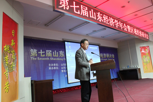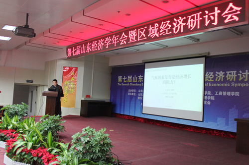 2012年11月10日,第七届“山东经济学年会”暨区域经济研讨会在鲁东大学商学院召开。会议由山东经济学年会秘书处主办,鲁东大学商学院、山东大学经济学院承办。来自省内外共24个单位的110名代表参加了本次年会。我院教师和研究生共8人出席了大会。院长李平教授主持了第三阶段的论文报告会。高峰副院长作为点评嘉宾点评了鲁东大学商学院魏国博士的论文。王金田博士在大会上作了题为《气候因素是否是经济增长的阻力》的主题发言。