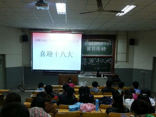 11月10日晚,金融专业在一号教学楼一楼东合堂举办“喜迎十八大”主题团日活动。活动由“十八大视频连连看”、“党团知识我来答”和一个交流环节三部分组成。活动现场,党的十八大开幕式、记者招待会、十八大山东团开放日等视频轮流播放;在“党团知识我来答”环节,团支部书记精心准备了十八大的相关知识及学校学院党政工作的问答题,同学们积极踊跃,热情高涨;最后,大家就胡锦涛总书记向大会作的题为《坚定不移沿着中国特色社会主义道路前进 为全面建成小康社会而奋斗》的报告进行交流共享,并对疑惑问题展开分析讨论。同学们纷纷表示,在认真学习贯彻十八大精神的同时,落实行动、勤勉创新,彰显当代大学生的风采。