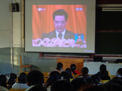 11月13日下午,工商管理专业2011级团支部组织观看十八大开幕式,聆听了胡锦涛总书记向大会作的题为《坚定不移沿着中国特色社会主义道路前进 为全面建成小康社会而奋斗》的报告。聆听报告,深入学习十八大精神,引导同学们树立与时代发展相符合的人生目标,为人生远大的理想和祖国的繁荣而奋斗。11月15日晚,工商管理专业2012级也举行了主题团日活动。活动伊始,同学们认真观看了党的十八大开幕式,专心听取了胡锦涛总书记的讲话、对党的重要精神进行深入学习。随后,以一曲《精忠报国》开始了同学们精心准备的节目表演环节,节目形式多样,精彩纷呈。其中,单口相声话党史、舞出祖国新风貌等节目博得了现场的一致好评。最后,同学们共同起立齐唱国歌,歌声慷慨激昂、铿锵有力,唱出了青年一代心中的激情和对祖国的热忱之心。