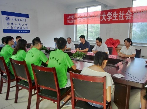 7月23日上午,山东理工大学与博山区池上镇政府签订共建大学生社会实践基地协议并举行挂牌仪式。签约仪式在博山区池上镇政府会议室举行。参加此次仪式的有山东理工大学领导、老师:校团委书记赵明,商学院党委副书记刘伟,商学院团委书记、学生科科长郝鹏,马克思主义学院老师白云,商学院辅导员赵建辉、毕奎奎;博山区池上镇政府领导:镇党委书记、人大主席李信忠,镇党委副书记李爱红,镇团委书记孙玥珂。此外,“绿动·知行”团队成员及当地媒体也参加了签约仪式。此次仪式由孙玥珂主持。