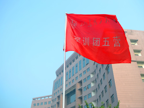 典礼上进行了军训授旗仪式,鸿远楼前,旗帜飞扬,招展如画。