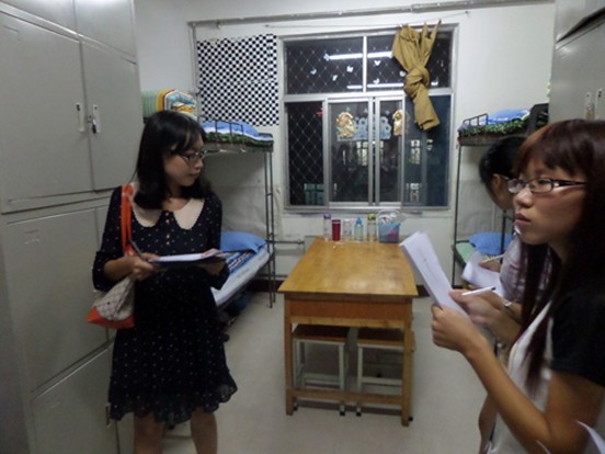 为促使我院新生养成讲文明、讲道德、讲卫生、守纪律的良好习惯,营造安全、舒适、温馨、和谐的公寓文化氛围,我院自律委特开展此次“新生文明宿舍”评选活动。9月13日晚,由辅导员齐丹丹、院自律委成员组成的评选小组对大一新生宿舍进行了全面检查。