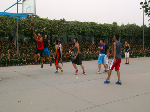 为丰富大一新生的军训生活,增进同学之间的友谊,更好的开展训练,9月15日下午,我院对大一新生举办了一场篮球友谊赛。我院团委书记、学生科科长郝鹏,新生辅导员老师,全体教官和新生们共同观看了此次比赛。
