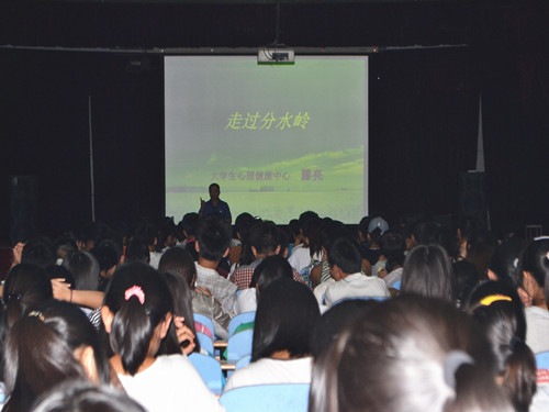 9月20日下午和晚上,“走过分水岭”心理健康教育讲座分三场在东校区大学生活动中心举行。大学生心理健康教育中心老师王素霞、滕亮分别担任主讲人,我院全体大一学生参加了讲座。