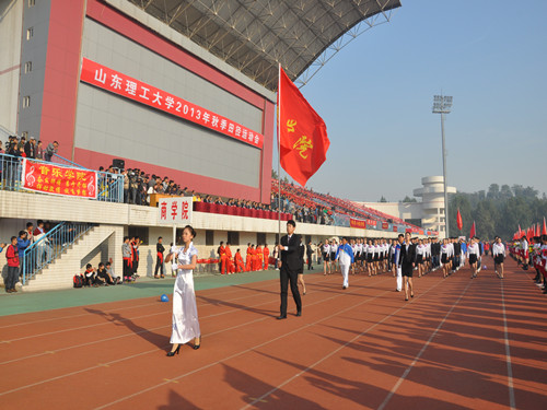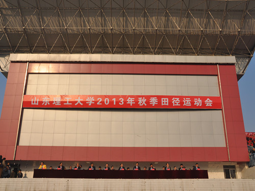 理工学子展风采,顽强拼搏赛英姿。10月17日上午,我校2013年秋季田径运动会在西校区第二体育场隆重开幕,校领导都光珍、张新义、谭秀森、张元利、王学真、杜瑞成、衣玉琛、吕传毅、张业赏,淄博市体育局局长翟慎政出席开幕式并在主席台就座。开幕式由副校长张元利主持。