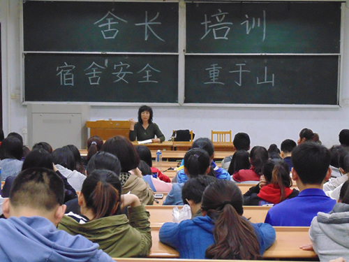 在会议上,董晓鸣提出“安全重于泰山”的口号,并强调舍长要充分发挥老师和同学间的纽带作用,积极配合管理员进行宿舍管理工作,以提高管理员的工作效率;与此同时,她还指出舍长要起到带头学习作用,在提醒本宿舍成员按时熄灯,及时与舍友交流等多个方面做一个好的带头人。随后,董晓鸣针对防火、防盗、防安全事故三个方面做出详细分析。她强调不乱接电线,不乱用插座,不使用违章电器以防止火灾的发生;进舍插锁,外出锁门,贵重物品随身携带以防盗。最后,董晓鸣呼吁同学们“注意安全,好好学习,健康成长,报效父母和国家”,赵建辉对此次会议作出总结。至此,公寓安全知识讲座圆满结束。