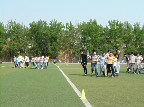 此次趣味运动会在国防生队伍、滑轮爱好者以及双节棍表演队伍精彩绝伦的演出中拉开了帷幕。参加此次趣味运动会的队伍共52支,每支队伍均为男女搭配,参与到此次活动中的同学多达500人。运动会共分四个大项,所有参赛项目需所有队员合作完成。首先是“疯狂的圆圈”比赛,各参赛队员手挽手结成圆圈向终点冲刺,在激烈的比赛中不时有人跌倒,但都立刻爬起来继续完成比赛,体现出大学生不抛弃、不放弃的精神;接下来举行的“集体跳绳”和“环环相扣”比赛,各参赛队伍充分发扬团队合作精神,相互协同完成比赛;在最后的“趣味接力赛”项目中,所有参赛选手都抱着破釜沉舟的勇气和一往无前的气势,以百米冲刺的速度奔驰在绿茵场上,为着胜利的目标而奋力拼搏。