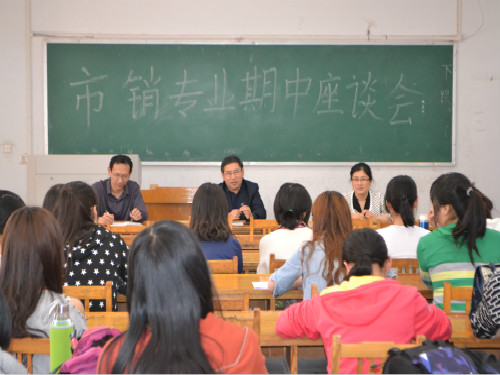 5月12日下午,我院在3号教学楼203教室举行了市销专业学习与发展指导交流会,参加此次交流会的有我院党委书记高厚礼、市销专业周涛老师、辅导员董梅老师及11-13级市销专业学生代表。