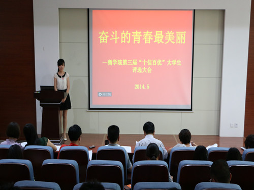 5月22日下午,商学院于四号楼二楼报告厅举行第三届“十佳百优”大学生评选活动,我院党委副书记王光坊、各系老师代表及学生代表参加了此次评议活动。