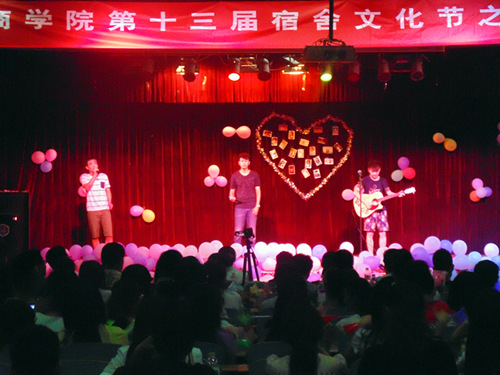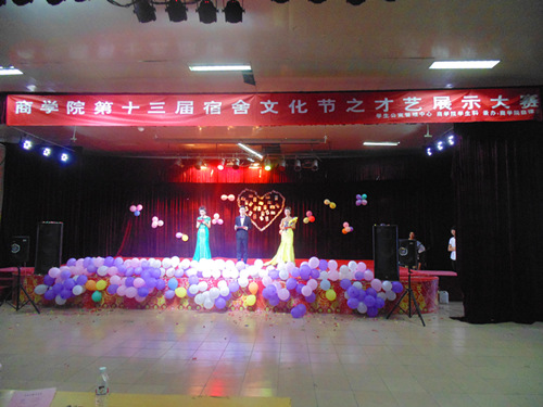 为展示商学院丰富多彩的宿舍文化生活和大学生健康向上的精神风貌及和谐、团结、友爱的宿舍情怀。6月7日晚,商学院自律委员会于北苑二楼举办第十三届宿舍文化节之才艺展示大赛。公寓管理中心副主任钟丽霞,校自律会指导老师叶华,辅导员侯倩、魏晓栋、赵建辉,宿舍管理员,三大组织主席团及广大商院学生参加了此次晚会。