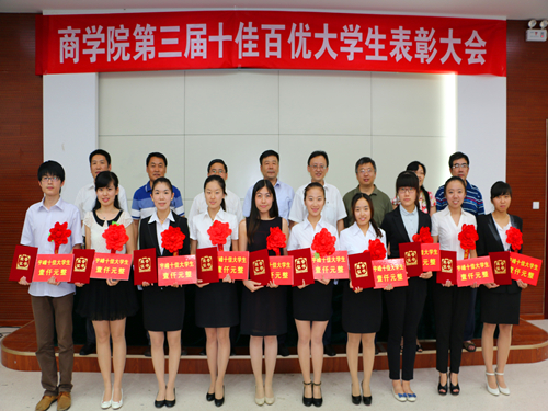 一年一度的十佳百优大学生的评选和表彰工作是商学院人才培养过程中的阶段性总结,是学院培育先进典型、发挥先进典型示范作用的一项重要工作,在学院上下营造了“比、帮、赶、超”的良好学风氛围。学院将以此为契机,充分发挥优秀学生在学风建设和人才培养中的先进表率和模范带头作用,鼓励广大学生奋发进取,努力把自己锻炼成理想远大、品德高尚、成绩优良、具有创新精神和实践能力的优秀人才,为推动优良学风形成和学院建设发展作出更大的贡献。