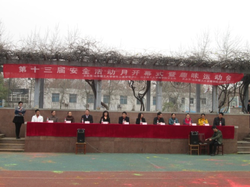 为了普及安全文化知识,共建安全和谐的校园,同时也为了丰富校园文化生活,11月27日下午,山东理工大学商学院安全活动月开幕式暨趣味运动会在东校区操场顺利举行。院党委副书记王光坊,公寓管理中心副主任钟丽霞、董晓鸣,院学生科科长朱星辉,院自律委指导老师沙作彬以及东校区公寓管理员参加了此次开幕式。