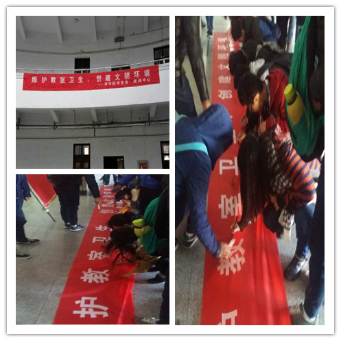 为倡导全院师生自觉遵守教室文明公约,创建良好的教室学习环境,增强保护教室环境的意识。12月1日上午,在东校区三号教学楼大厅,商学院学生会联合新闻中心举办了“维护教室卫生,创建文明环境”为主题的签名活动。