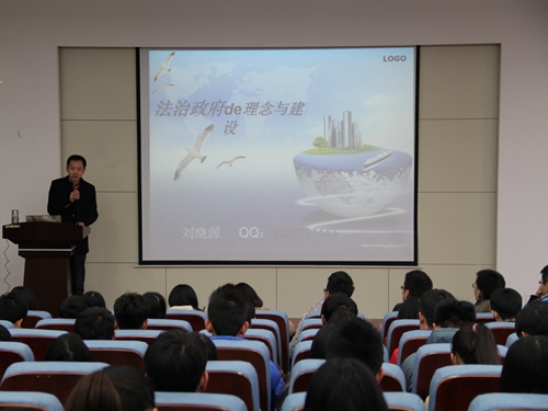 刘晓源紧密联系十八届四中全会精神,以“法治政府的理念与建设”为题,深入浅出,就法治政府的相关问题与同学们进行交流。首先,针对法治政府理念的问题,刘晓源依次从其内涵、基本原则、意义等方面进行深入讲解。随后,联系社会热点案例,刘晓源向同学们阐述了法治政府的基本内容,并具体解释了阳光政府、有限政府、诚信政府、责任政府的内涵。最后,刘晓源向在场同学强调了落实十八届四中全会精神,积极学习中国特色社会主义法治体系的重要性。