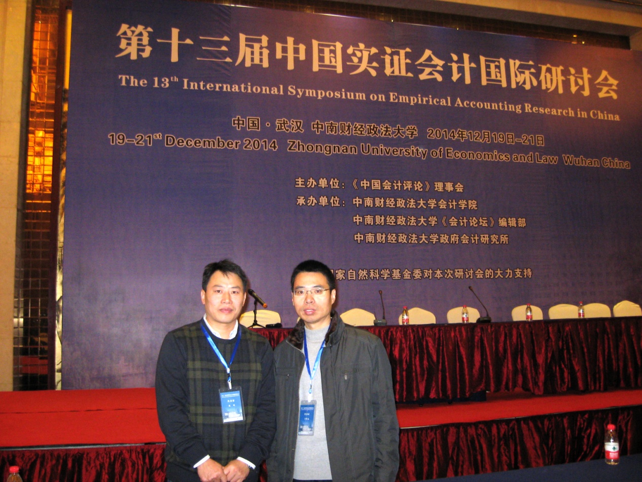 12月19日至21日,由《中国会计评论》理事会主办,中南财经政法大学会计学院、中南财经政法大学《会计论坛》编辑部与中南财经政法大学政府会计研究所承办的“第十三届中国实证会计国际研讨会”在湖北武汉举行。我院财务管理系主任齐鲁光博士和陈刚博士参加了会议,并参与了分论坛的讨论,与其他名校的会计学教授和参会教师进行了交流。