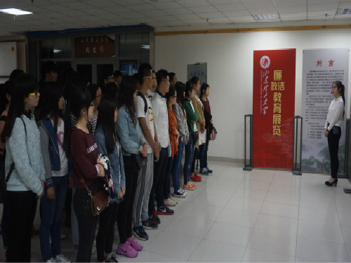 4月23日晚上,学院组织第九期党校入党积极分子参观学校廉政廉洁教育展览,辅导员沙作彬担任领队,与本期85名入党积极分子一同参观。