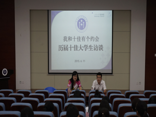 6月11日,历届十佳大学生访谈于四号教学楼二楼报告厅举行。历届十佳大学生获奖者王秀文和李光一向我们分享了他们的故事。