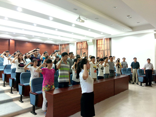 7月8日下午,商学院新党员入党宣誓仪式在学院报告厅隆重举行。院党委书记高厚礼、院党委副书记王光坊、各学生党支部书记及新发展的44名学生党员参加了此次宣誓仪式。
