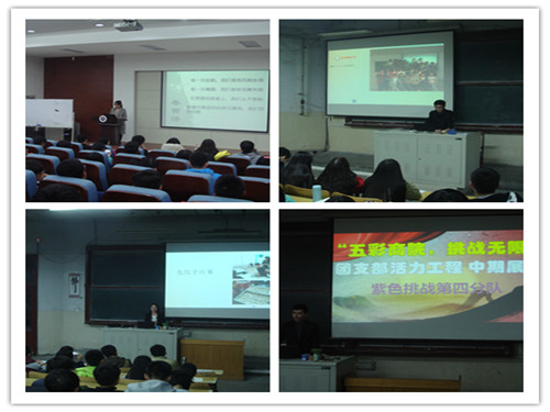 团团相扣结情谊,部部惊心抒风采。11月12日晚,我院“五彩商院 挑战无限”团支部活力工程建设中期答辩活动于四号楼报告厅、103教室及104教室分别举行。各颜色团支部分成四个挑战队进行比拼。学生科辅导员及部分学生组织成员担任评委,部分2015级同学观摩了此次活动。