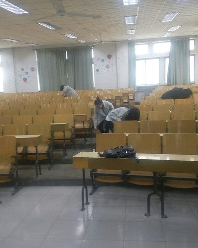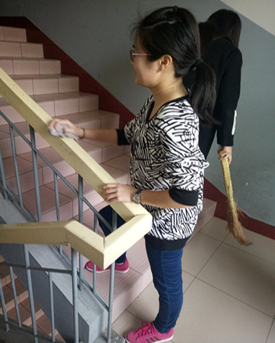 信管本1503、经济1502、国贸1503等团支部在宿舍、教室、操场等地进行卫生清理。