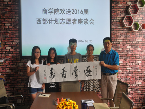 6月20日下午,我院欢送2016届西部计划志愿者座谈会于4号楼创业咖啡厅举行。此次座谈会由我院党委副书记王光坊及部分西部计划志愿者代表参加,由我院学生科辅导员巩丽主持。