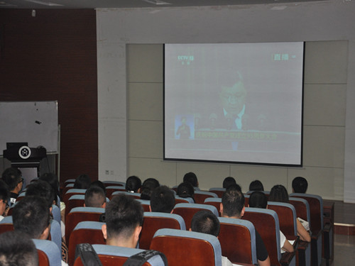 商学院党委组织师生党员集中观看庆祝中国共产党成立95周年大会实况