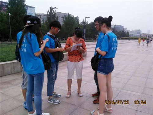 队员在泉城广场发放调查问卷