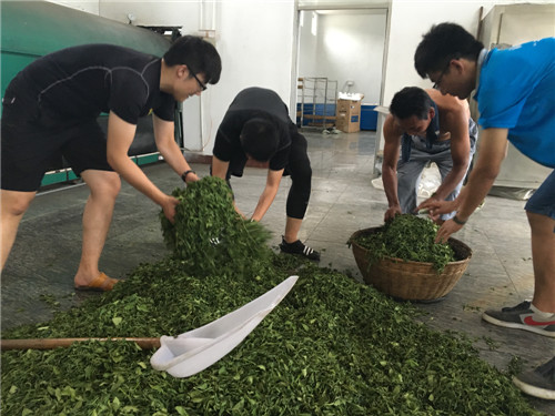 “茶乡茶香”实践团走进日照市岚山区巨峰镇后黄埠村,对当地茶叶的种植、采摘及加工等进行了调研。在乾清茶叶有限公司经理的带领下,成员们参观了公司的第一采摘园,实地体验了茶叶的采摘过程;深入茶园,利用所学方法帮助茶农采茶,就茶叶的销售情况进行交流;走进绿茶加工工厂,观看绿茶的制作流程,体会到茶叶加工工序的繁琐以及劳动者的辛苦。
