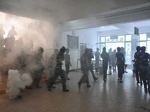上午八点,演练准时开始。活动分为两部分进行。首先,东校区各个宿舍内充满烟雾后,同学们纷纷开始有序撤离。同学们用毛巾捂住口鼻,低下腰快速离开烟雾区,在工作人员的指挥下从出口安全撤离。整个过程紧张迅速而有条不紊。随后,大一全体同学集体前往东校篮球场,学习灭火器等消防器材的使用。齐化祯对消防器材的正确操作方法以及注意事项进行详细的讲解,并让同学们亲自尝试使用,要求同学们注意日常生活中的安全,加强自我保护,提高安全意识。不少同学踊跃报名并进行实际操作,掌握了灭火器的正确使用方法。