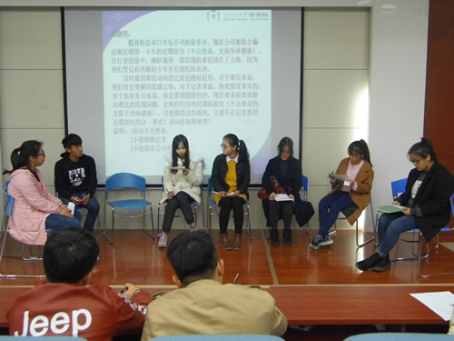 学院团委高度重视此次结业考试,在考核方式上进行了大胆创新,采用无领导小组讨论的形式进行,并由学院优秀学生代表担任评委。学生骨干随机分为十三组,上场顺序由各组代表抽签决定,每组上场前由其代表抽签决定辩答题目。各组成员就所抽取的题目进行十分钟的自由讨论,最后推选一名成员进行总结发言,评委根据个人表现情况进行打分。此次结业考试考核方式新颖,题目所涉内容广泛,考验了学生骨干的思辨能力和团队协作能力,充分展现了团队风采。