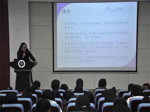 12月1日晚,我院经济学博士田朔在四号楼二楼报告厅开展了题为“进口贸易、MFDI与经济增长质量——FTA视角下的国际经济研究”的学术报告。