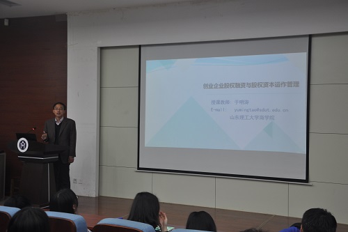 4月13日晚,我院在四号教学楼二楼报告厅开展题为“创业企业股权融资与股权资本运作管理”的学术讲座。此次讲座由我院财务管理系老师于明涛主讲,部分学生代表参加。