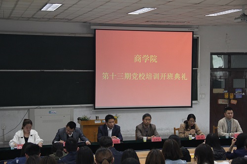 全体师生起立,奏唱国歌,开班典礼正式拉开帷幕。首先,郭洪涛宣读《商学院2017年度第十三期入党积极分子培训安排》,对培训时间、培训内容、培训方式做了详细的介绍,并向在座人员介绍了此次培训的结业方式和培训要求。随后,学生党员代表桑军帅和入党积极分子代表范雨璇依次讲述了自己关于入党的认识和看法。高厚礼则向在座学生表示,要珍惜这次关于入党学习的机会并着重讲述了关于入党的四个要求,即要有超常的主动性,积极要求参加中国共产党,成为合格的共产党员;付出不亚于任何人的努力,高标准要求自己,全心全意为党工作;以终为始,慎终如始,入党积极分子要严格按照共产党员的标准要求自己,使自己具有共产党员的风范;具有共产党人的担当以及无条件的责任感。