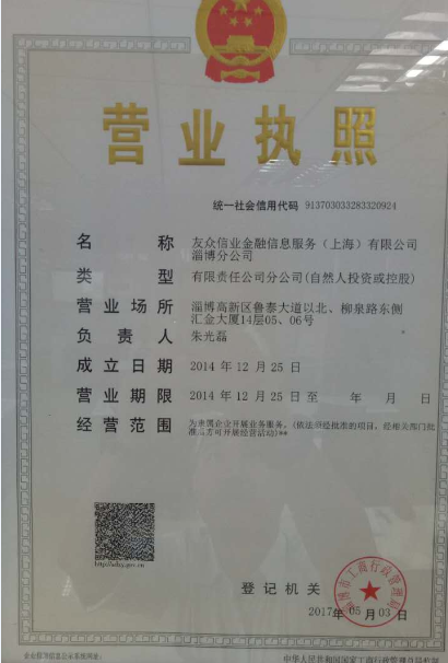 友众信业金融信息服务(上海)有限公司(以下简称“友信”)秉承“简单金融,诚信生活”的核心理念,为使客户得到更专业的金融信息服务,在2012年成立于上海并取得含“金融信息服务”这一经营范围的企业法人营业执照,注册资本2亿元人民币。友信前身为友众信业商务顾问(北京)有限公司(以下简称“友信北京公司”)并成立于2011年5月。