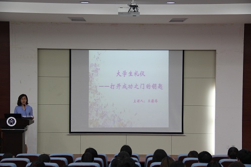 培训伊始,王潇伟从礼仪的起源和发展讲起,讲述了古人所言“不学礼,无以立”的道理,着重讲述了中西方礼仪深远的历史发展进程,并通过列举从古至今重视礼仪的案例来表达传承礼仪的重要性。同时,她阐述了大学生学习礼仪的重要意义,即提高人们的自身修养、塑造良好的个人形象、打开交际之门的钥匙、促进事业成功的手段、形成完美的人格。她还讲述了大学生礼仪的具体内容,其中包括个人、日常、社交以及校园礼仪,她着重讲解了如何在正式场合穿着得体。王潇伟最后讲解了大学生提升礼仪修养的方法,并鼓励学生积极参加礼仪培训,提升个人素质。