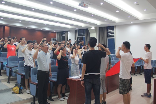 活动伊始,由毛婷宣读活动方案与流程。随后,在场党员共同宣誓,在党旗下,接受心灵的洗礼,再次牢记共产党员的政治责任和历史使命。紧接着,张双发表讲话,他说本次活动是他与学院党员初次见面,并对在场党员提出三点要求:第一、每位党员应树立党员意识,强化责任意识,谨记党员身份,以身作则;第二、希望学生党员要以学习为重,努力做合格的社会主义接班人。第三、在学院特殊时期,希望党员干部能发挥带头作用,努力配合协调学院工作,助力学院发展。