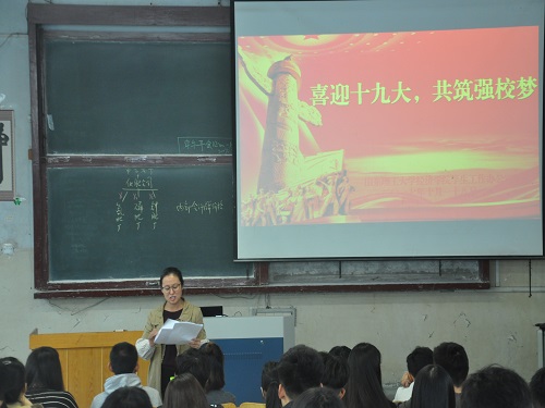中国共产党第十九次全国人民代表大会于10月18日隆重召开,为在学院各级团学组织中营造喜迎十九大的浓厚氛围,引领全体学生青年坚定跟党走的理想信念,我院于10月18日开展了“青春喜迎十九大,争做五有好青年”一系列主题教育活动。