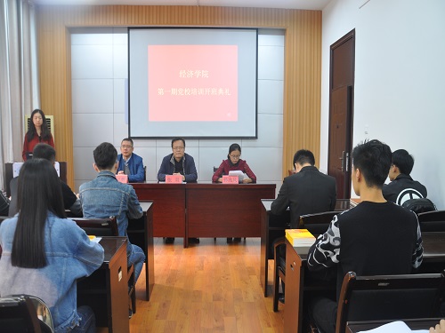 为加强学生入党积极分子的党性意识,庆祝中国共产党第十九次全国代表大会隆重召开,10月19日下午,经济学院于四号教学楼316室召开了第一期党校培训开班典礼。党总支书记、党校校长张双,党总支副书记朱星辉,团总支书记孙兆风以及83名入党积极分子积极参加此次典礼,辅导员毛婷主持。