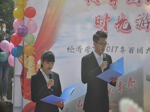 9点整,游园会正式拉开帷幕,主持人上台主持开幕式,介绍了经济学院和管理学院的社团种类。其中,经济学院共有七个社团对外纳新,包括经济学人、散打协会、大学生桥牌协会、青年创业菁英汇、祥瑞龙狮协会、英语口语俱乐部和证券爱好者协会。在百团大战暨文化正式开始的欢呼声中,彩色气球飘向空中,游园会如火如荼地进行起来。此外,游园会还启动了抽奖活动,集齐19个社团印章可以获得抽奖机会,使同学们在集印章的同时更多的了解各个社团。