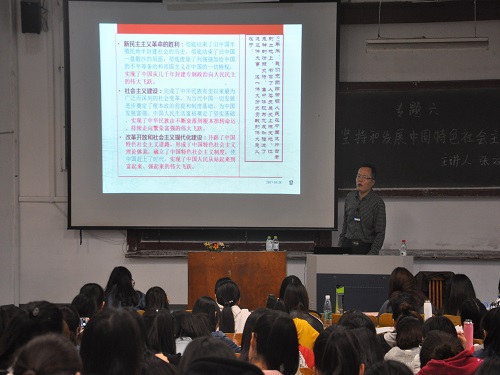 10月26日下午,经济学院在1号教学楼东一合堂举行党课培训之中国特色社会主义,此次培训由经济学院党总支书记张双主讲,学院全体入党积极分子参加。