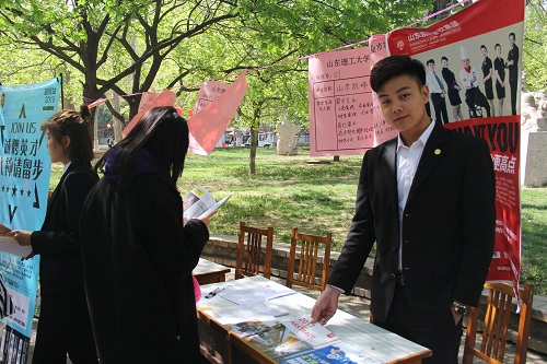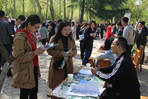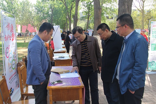 4月15日上午,2018届经管类毕业生春季校园招聘会在东校区中心花园举行,吸引了千余名学生参与。招生就业处处长陈学星、副处长宋红丽,经济学院党总支书记张双、院长张红霞、党总支副书记朱星辉等到招聘会现场交流指导。