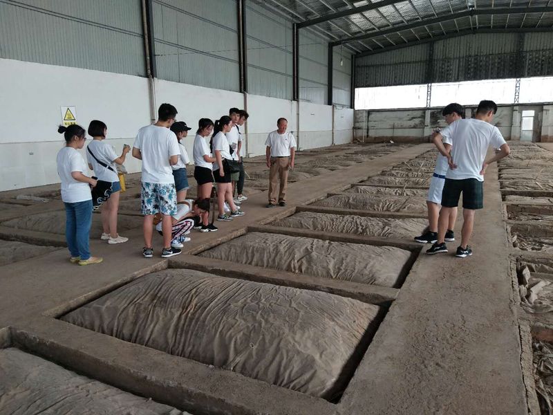 首先,相关领导及工作人员热情表达对我院实践团的欢迎,在行走过程中与实践团队长进行亲切交谈,简单介绍酿酒情况。随后,大家一同进入酒曲发酵的地方,观察酒曲发酵中的形态,了解白酒的初步形成过程。紧接着,我们进行了解酒厂的白酒加工环节,工作人员向我们介绍了不同度数,不同年限的各类白酒以及白酒的分类,并耐心解答我们对于白酒制作生产过程中的疑惑,使我们了解更多白酒知识。讲解员表示要想酿出好酒需要技术和经验。同时我们试尝了该工厂的白酒,感受了不同浓度白酒的不同味道,工作人员还向我们介绍了健康饮酒的方式,如不要酗酒,不要吃西药后喝酒等。接着,大家进去该白酒工厂工作销售地方,观看了他们的品牌的白酒的成品,了解他们的主推和特色白酒。最后,实践团成员与穆柯寨白酒的工作人员及领导合影留念,感谢他们的支持与帮助。