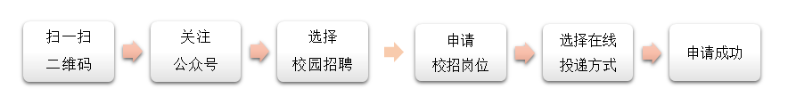 1、职位申请2、笔试+面试 3、签约 4、体检 5、入职