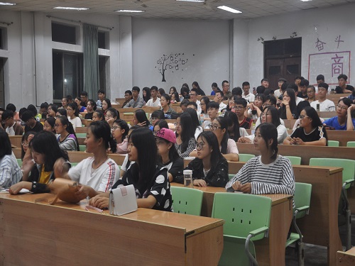 9月15日晚,经济学院全体学生在3号教学楼各教室观看观看《新闻联播》及《焦点访谈》,2018级新生观看入学教育报告会直播。
