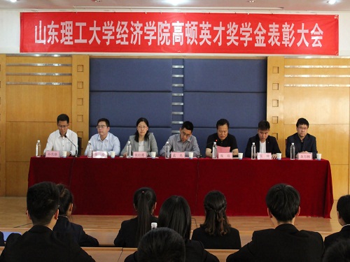 为扎实推动学院学风建设,营造积极向上的校园育人氛围,5月9日下午,经济学院在东校区图书馆报告厅举行山东理工大学经济学院高顿英才奖学金表彰大会。上海高顿教育培训有限公司山东区域市场总监孟光、市场经理张坤、市场主管张习相、经济学院党总支书记张双、院长张红霞、金融学系系主任余万林及部分辅导员、学生代表参加大会。大会由经济学院党总支副书记孙兆扬主持。