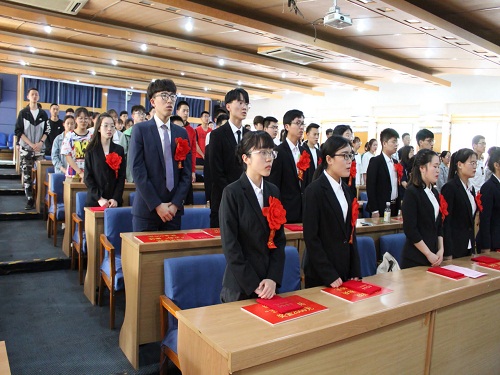 最后,全体起立奏唱校歌,学院领导与会嘉宾及学生代表在图书馆前合影留。(刘小溦 彭帆)
