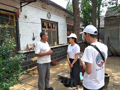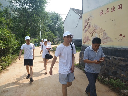 团队成员来到到寨子崮村展开调研工作,走访采取调查问卷的形式进行,由于乡村中以留守老人、儿童为主,实践团成员采取口述方式将调查内容传递给调查对象。实践团成员分为三组,分别负责采访、摄影与视频录制工作。