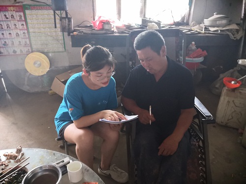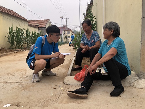 活动伊始,队长于际杰为队员讲解相关注意事项,进一步明确此次问卷调查的目的和重点,他说到,问卷调查虽依据于书面问答题目,但切忌采用简单问答模式,应加大同村民交流力度,多问、多记、多反思。随后,为提升工作效率,他将团队成员合理分成两个小组,分区域行动。乡村中以留守老人、儿童为主,由于调查对象文化程度有限,团队成员便采取口述的方式将调查内容传递给调查对象。