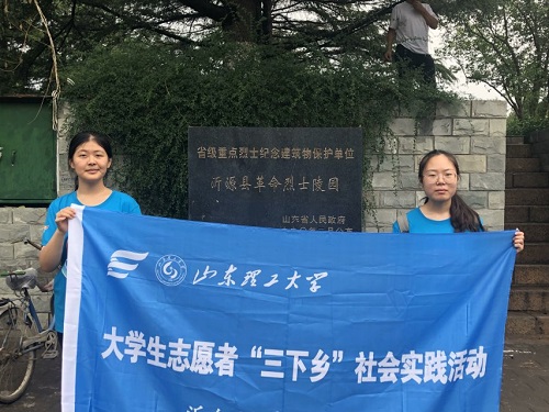 成员们手持队旗在烈士陵园门口进行了拍照纪念后,开始入园参观。烈士陵园内,成员们为躲避突如其来的大雨,便在附近一处小亭子内避雨。在这里有幸遇到了同样来参观的党委书记,成员们决定抓住这次宝贵机会,对党委书记进行了一次关于红色文化的访谈。在与书记的交谈中了解到,沂源县是一块英雄的土地,是一个革命老区。在抗日战争时期,“沂源民兵”就闻名全国。但与此同时也是一个工业老区,环保问题亟待解决,产业升级与优化成为沂源县发展的首要目标。生态旅游业逐渐成为沂源县响亮的品牌,以70万亩林果基地、山村“农家乐”为代表的农业民俗游等旅游产业日益兴起,为当地经济发展做出了巨大贡献。