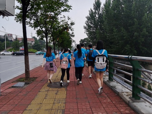 7月21日下午,“沂红源景”实践团成员踏上了烈士陵园的道路。时阴时晴的天气并没有削减成员们的热情,成员们兴致高昂,一边欣赏着沂源市区的美景一边徒步行走,半个小时后,实践团到达了烈士陵园。
